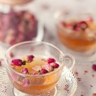 - разложите лепестки на дне кастрюли в 2-3 слоя, залейте их водой, чтобы она покрыла лепестки;