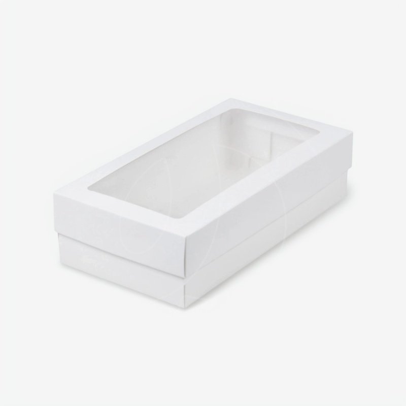 Коробка для макарон с окном и ложементом белая 21х11х5,5 см