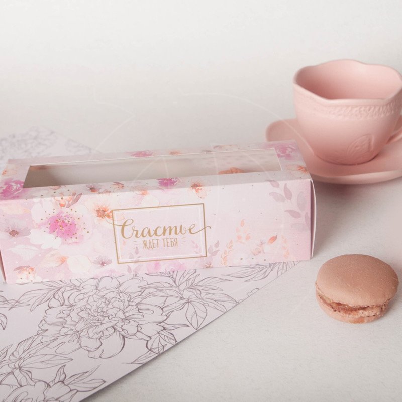 Коробка для макарон с окном "Счастье ждёт тебя"