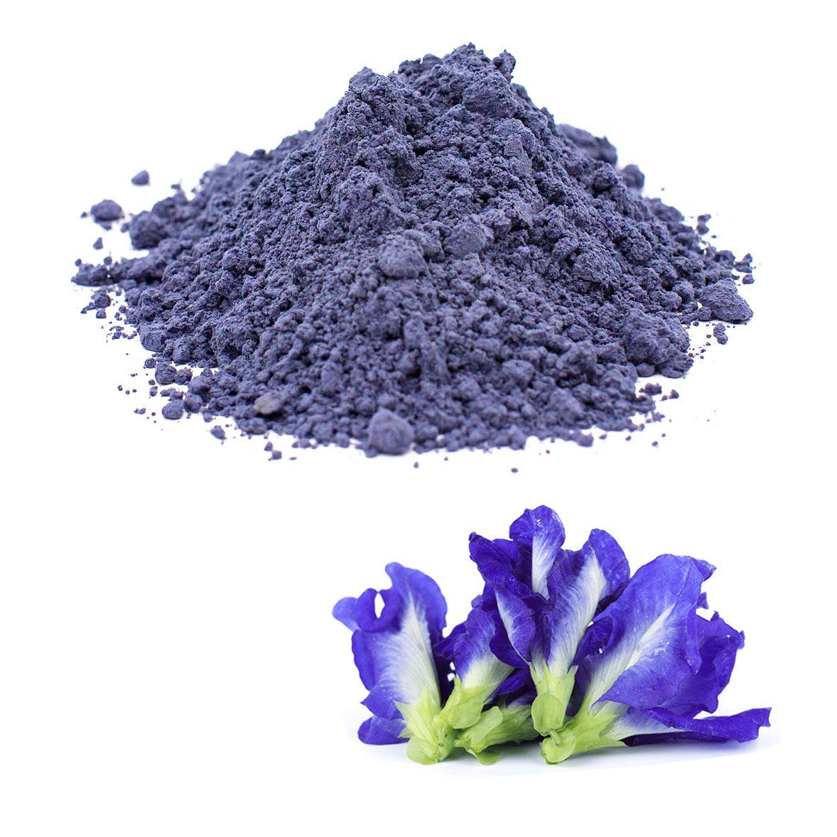 Голубой анчан изготовлен из перемолотых цветков Клитории тройчатой (анчан), которые обладают натуральным ярким голубым оттенком.