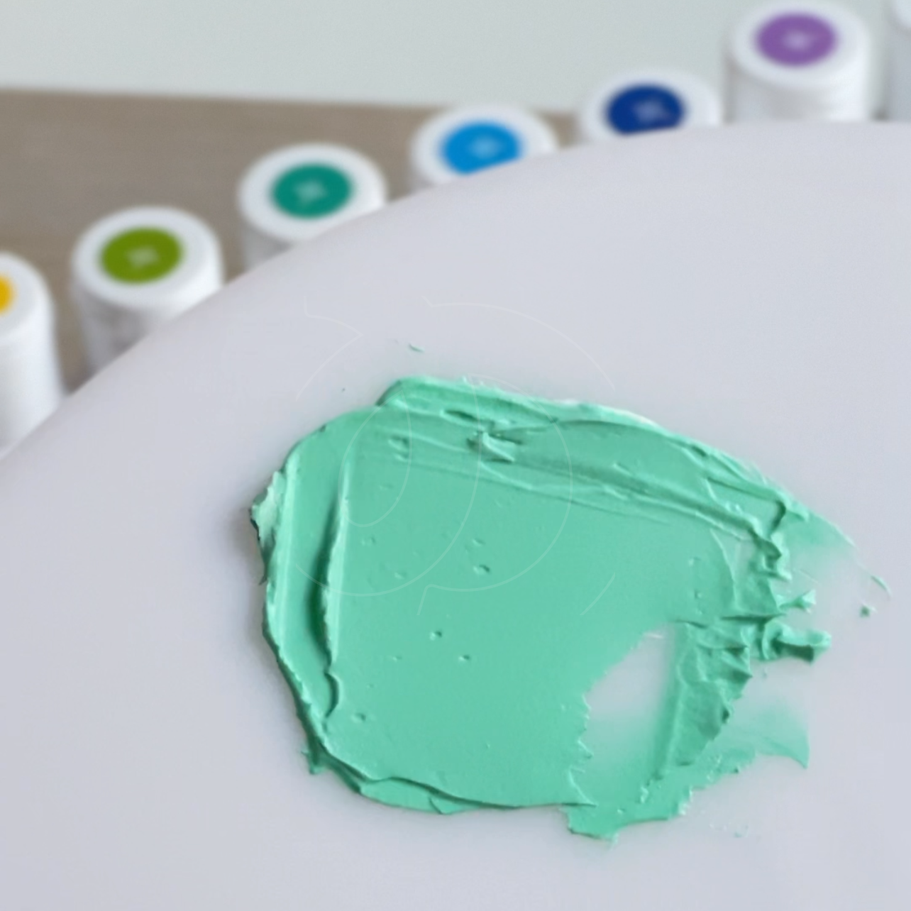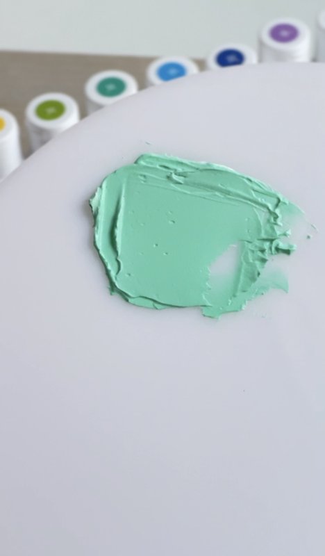 Это уже не мята, это мощный эвкалипт)) Краситель супернасыщенный, я капнула буквально каплю на небольшое количество массы и получила вот такой плотный цвет. Оттенок красивый, но рассчитывать каплями такие пигментированные красители неудобно, для нюдовых оттенков вообще советую добавлять на кончике зубочистки