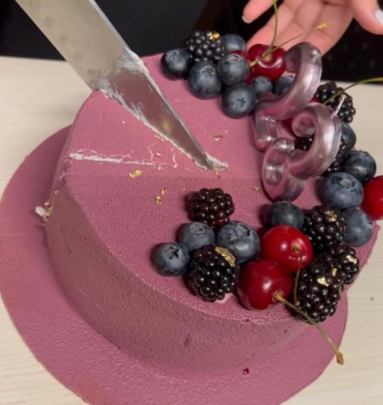 Краскопульт распыляет жидкость каплями, которые на замороженном торте застывают, в итоге получается матовая бархатистая поверхность.