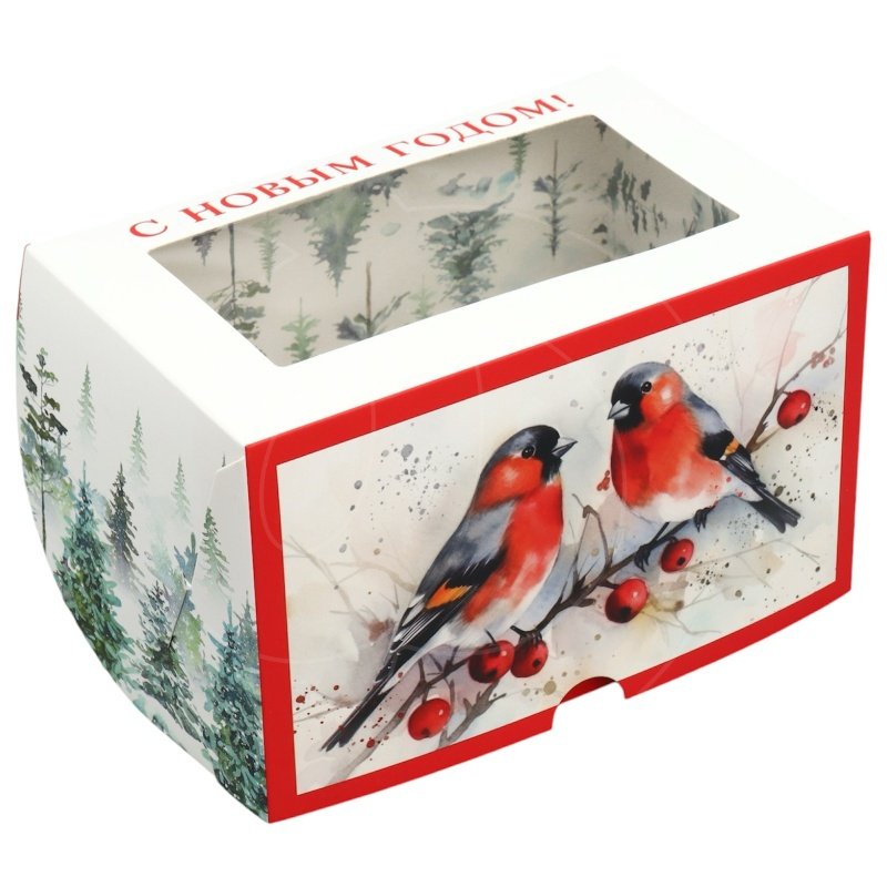 Доставка Коробка на 2 капкейка с окном "Снегири" 16х10х10 см из магазина в вашем городе: