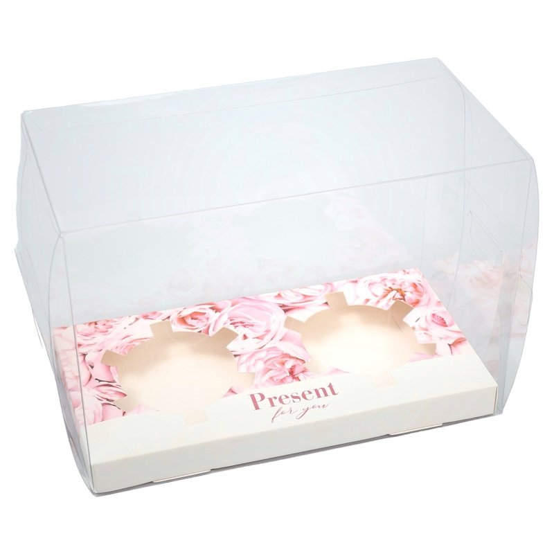 Доставка Коробка на 2 капкейка с прозрачной крышкой "Present" 16х8х11,5 см из магазина в вашем городе: