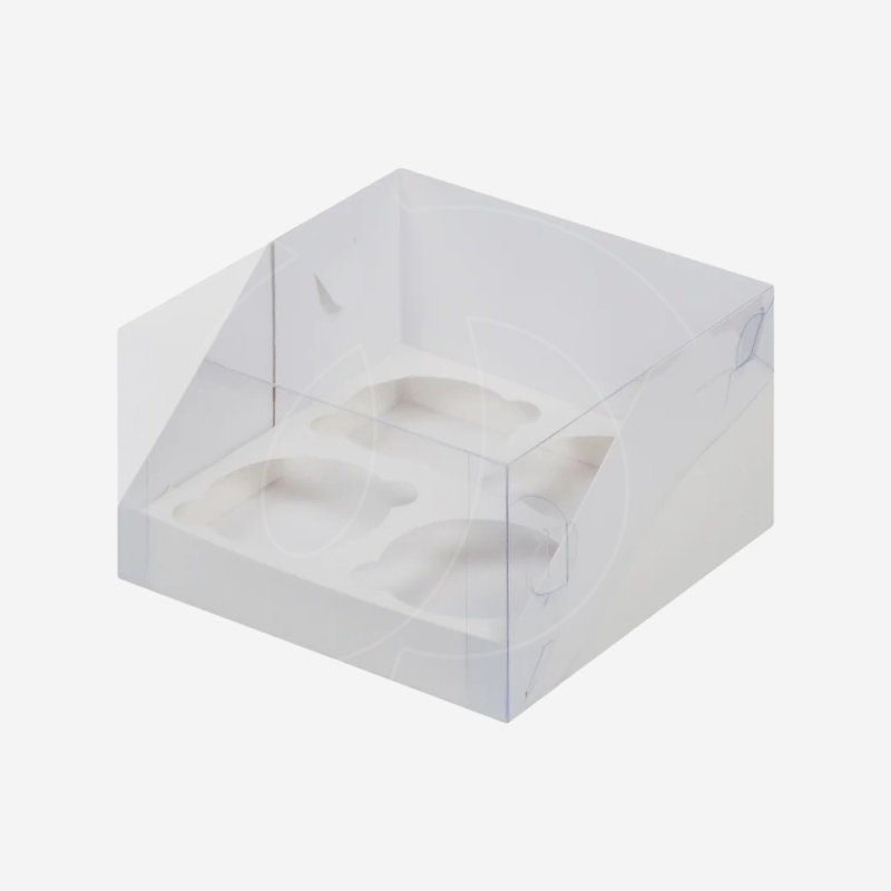 Доставка Коробка на 4 капкейка с прозрачной крышкой белая из магазина в вашем городе: