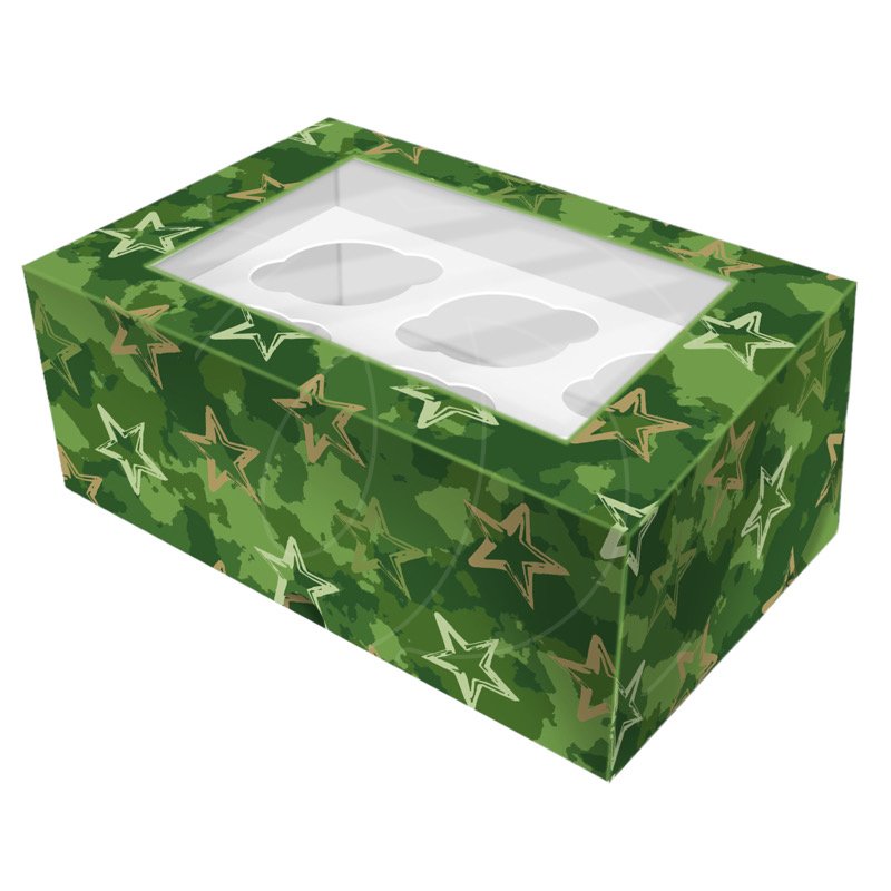 Доставка Коробка на 6 капкейков с окном "Мужская" 25х17х10 см из магазина в вашем городе: