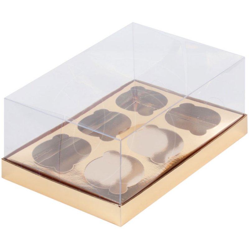 Коробка на 6 капкейков с прозрачной крышкой золото