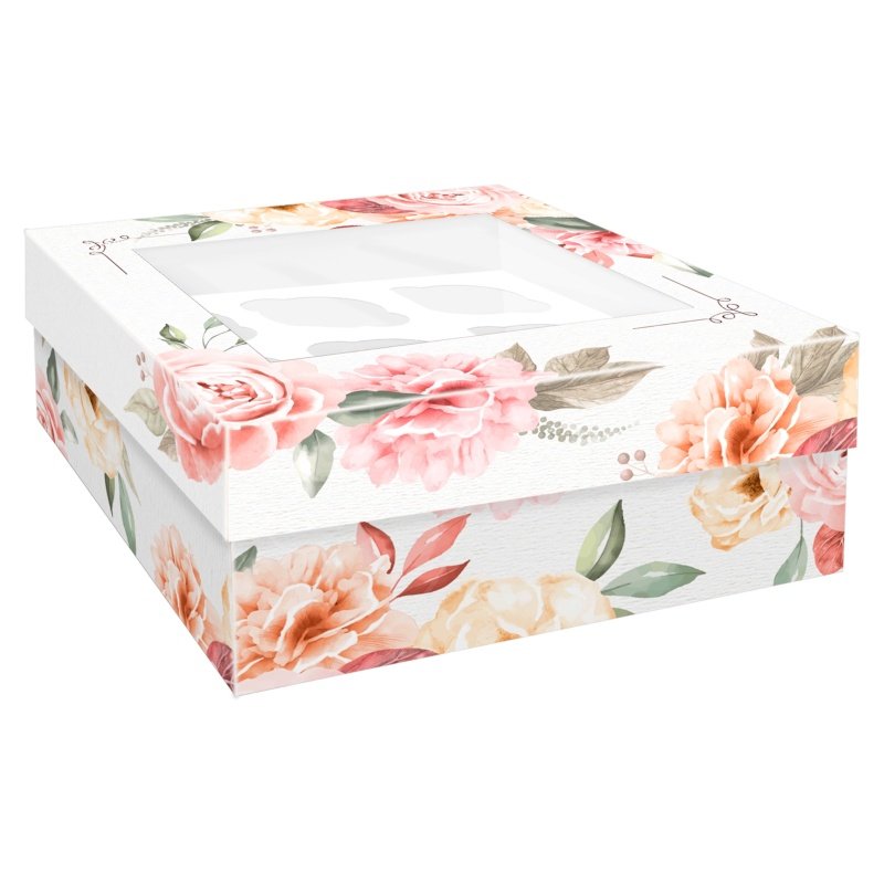 Доставка Коробка на 9 капкейков с окном "Пионы" из магазина в вашем городе: