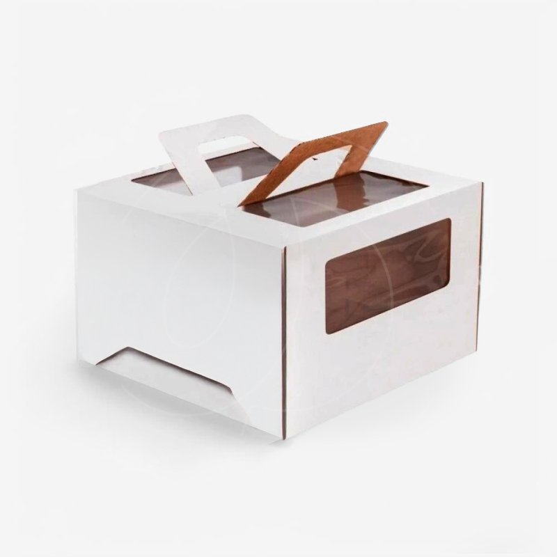 Доставка Коробка для торта с маленьким окном и ручкой белая 24х24х20 см из магазина в вашем городе: