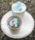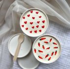 Поместите десерт внутрь и закройте крышку.