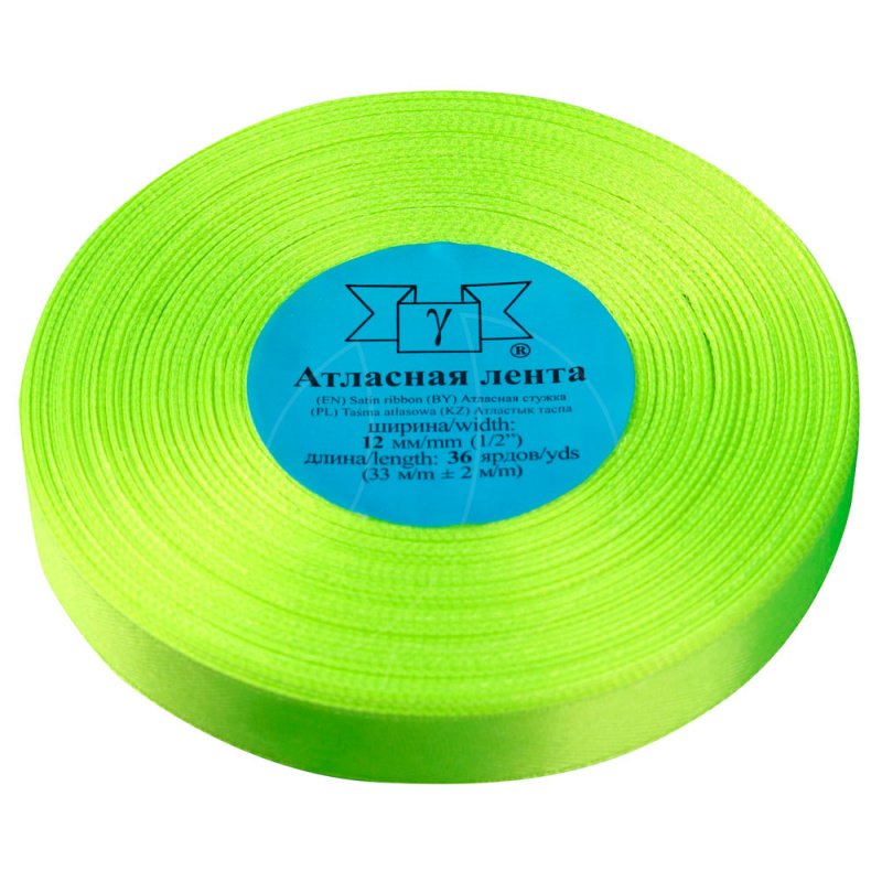 Лента для декора и упаковки Атласная 057 Неоновая зелёная 1,2 см