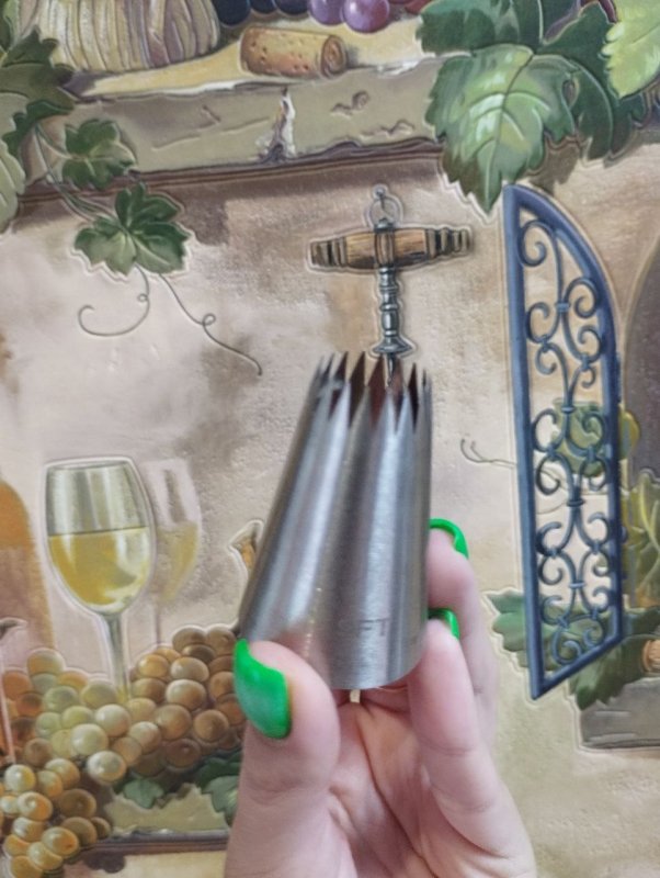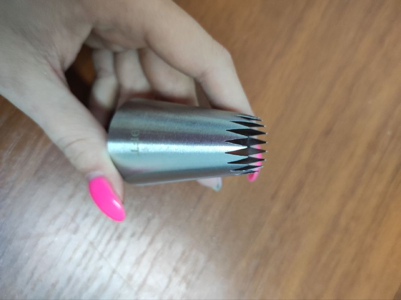 Самая лучшая насадка придуманная для эклеров. Красивые эклеры, а благодаря множество зубчиков эклеры получаются равномерны пропеченные и не лопаются. Так же при помощи этой насадки отсаживаю зефир. Для шапочек не очень как по мне, очень мелко. Качество металла на высоте! Всем рекомендую