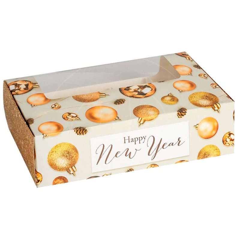 Доставка Коробка на 5 эклеров и эскимо с окном "Ёлочные игрушки" 25,2х15х7 см из магазина в вашем городе: