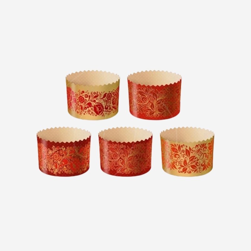 Представляют собой одноразовые формы из специальной бумаги с рисунком для выпечки и последующего хранения куличей. Формы выдерживают температуру выпечки до +230 С. Рекомендуемая температура выпечки куличей - +170-180С. Не требуют предварительной смазки.