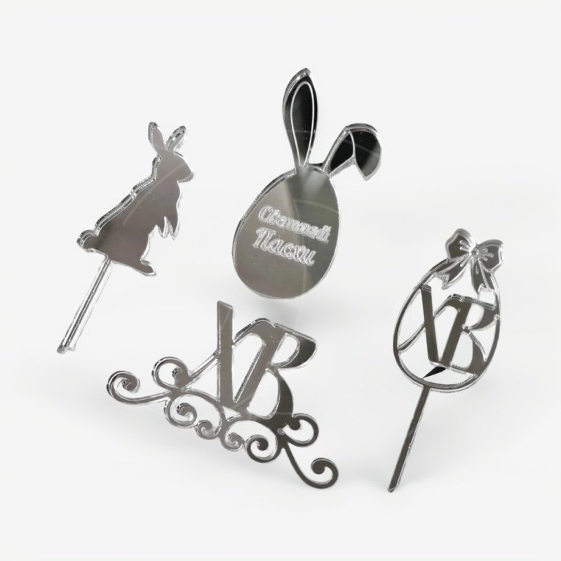 Доставка Набор топперов декоративных акриловых "Пасхальный набор" Серебро 4 шт из магазина в вашем городе: