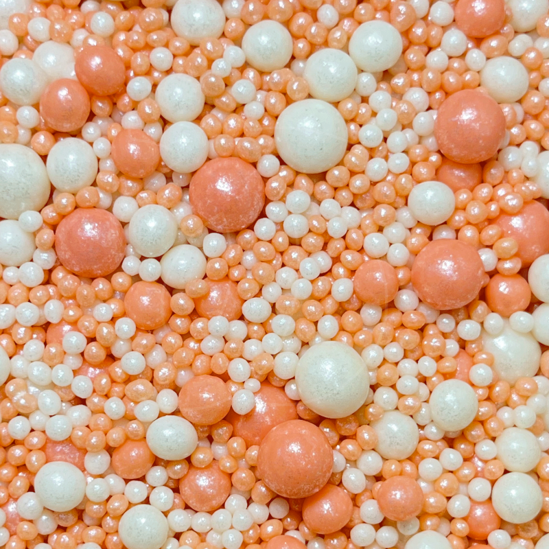 Жемчужная посыпка покрыта ярким пищевым блеском персиковых оттенков.