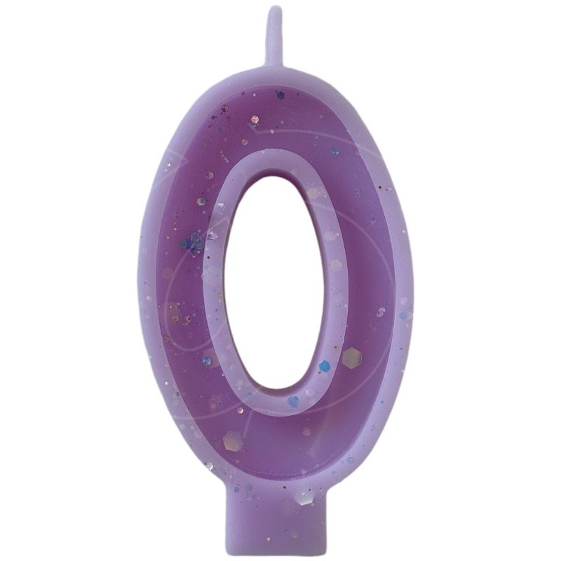 Доставка Свеча декоративная Цифра "0" Сиреневая с блёстками из магазина в вашем городе:
