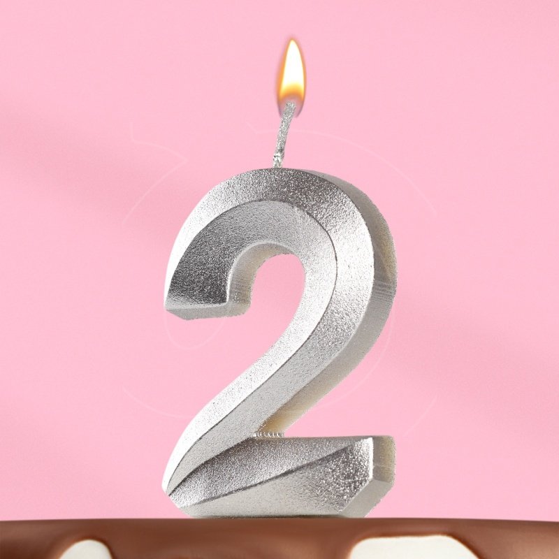 Доставка Свеча декоративная Цифра "2" Грань Серебро из магазина в вашем городе: