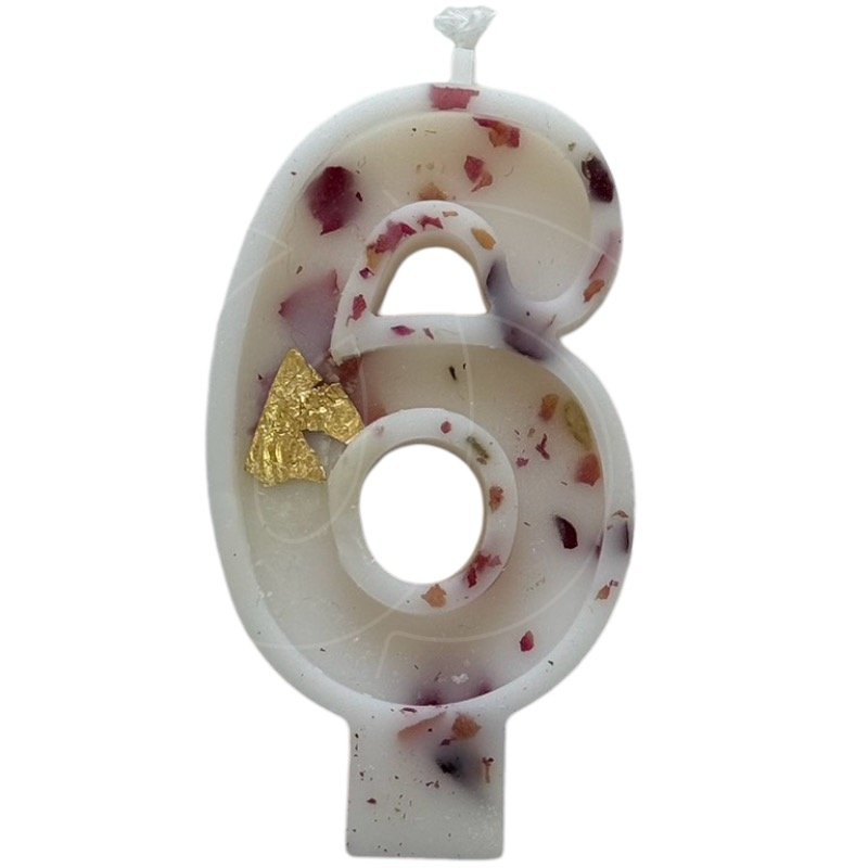Доставка Свеча декоративная Цифра "6" Белая с розой и поталью из магазина в вашем городе: