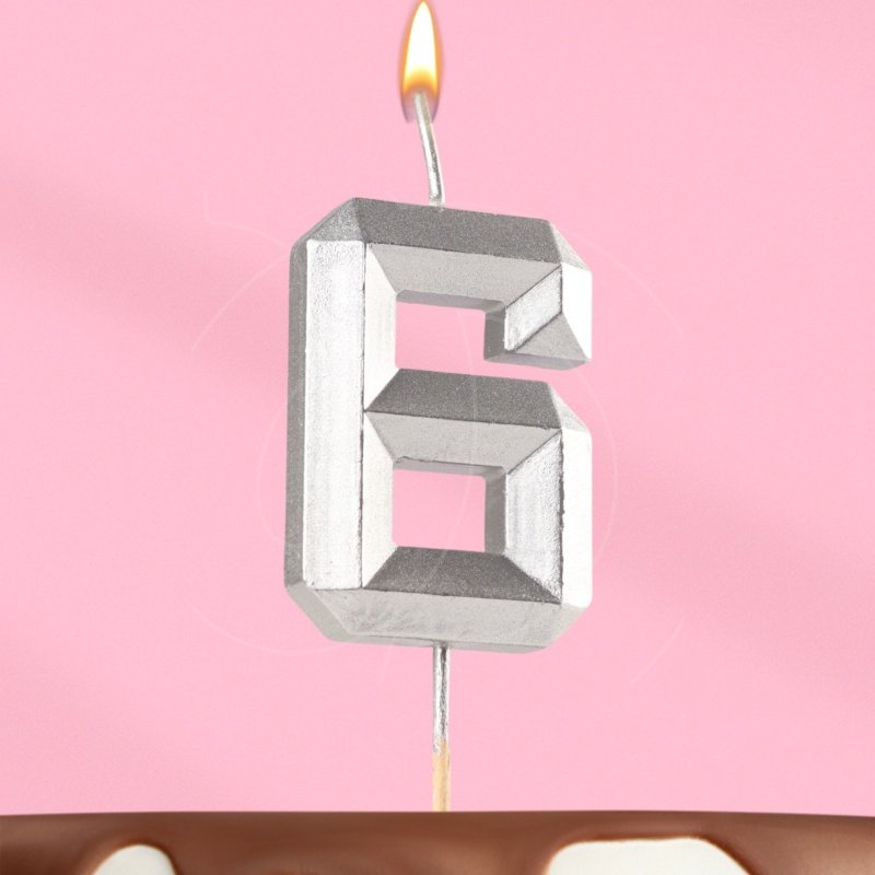 Доставка Свеча декоративная Цифра "6" Серебряная грань из магазина в вашем городе: