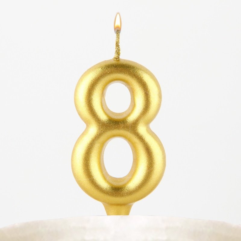 Доставка Свеча декоративная Цифра "8" Золотая пухлая из магазина в вашем городе: