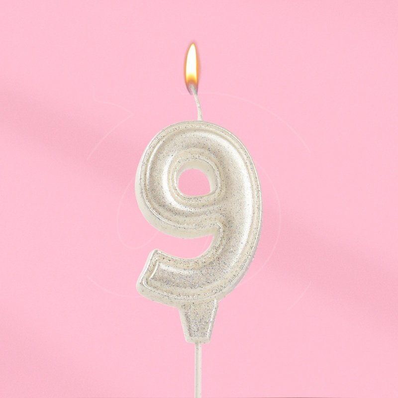 Свеча декоративная Цифра "9" Жемчужный перламутр с блёстками
