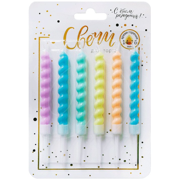 Доставка Свечи декоративные "Большие завитки" Разноцветные 8 см 6 шт из магазина в вашем городе: