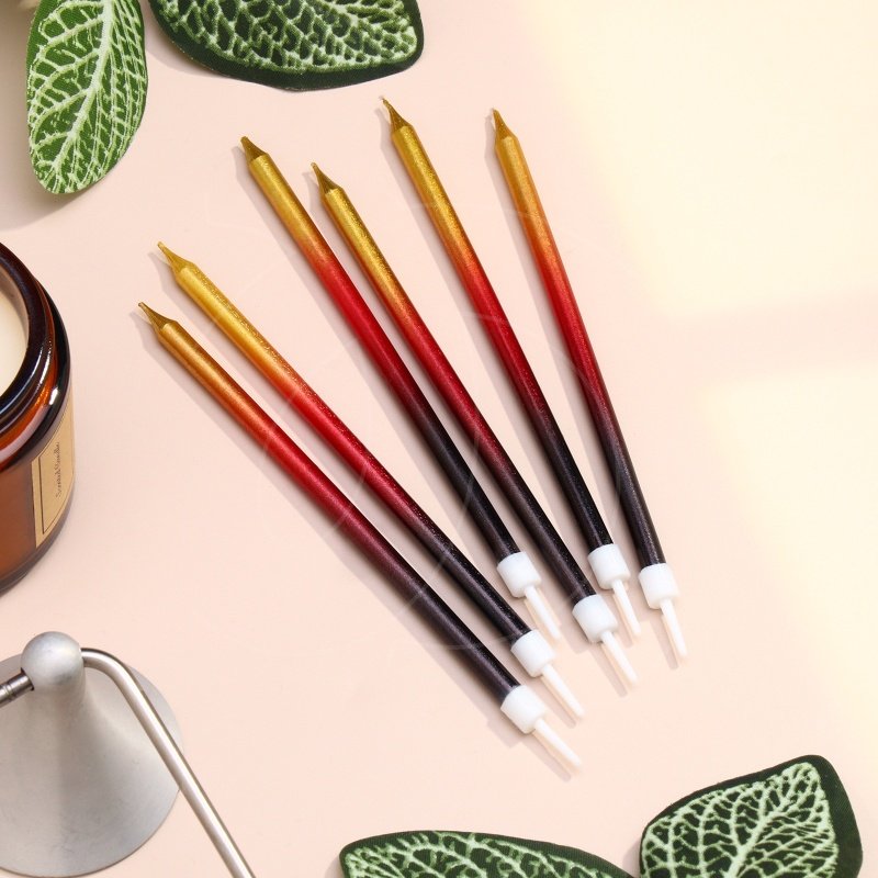 Добавьте своему десерту изящное настроение с помощью тонких и высоких свечей с дизайном в виде градиента.