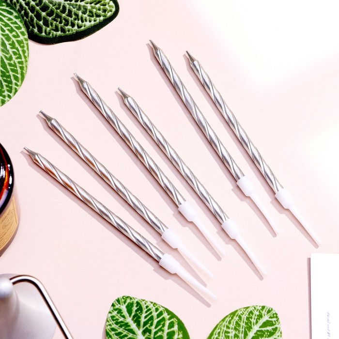Доставка Свечи декоративные Серебристые 14 см 6 шт из магазина в вашем городе: