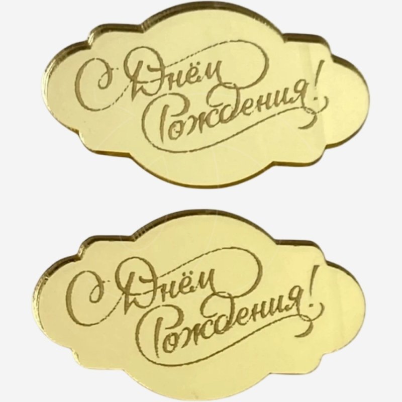 Доставка Набор топперов декоративных акриловых "С Днём Рождения" Золото 5х3 см 2 шт из магазина в вашем городе:
