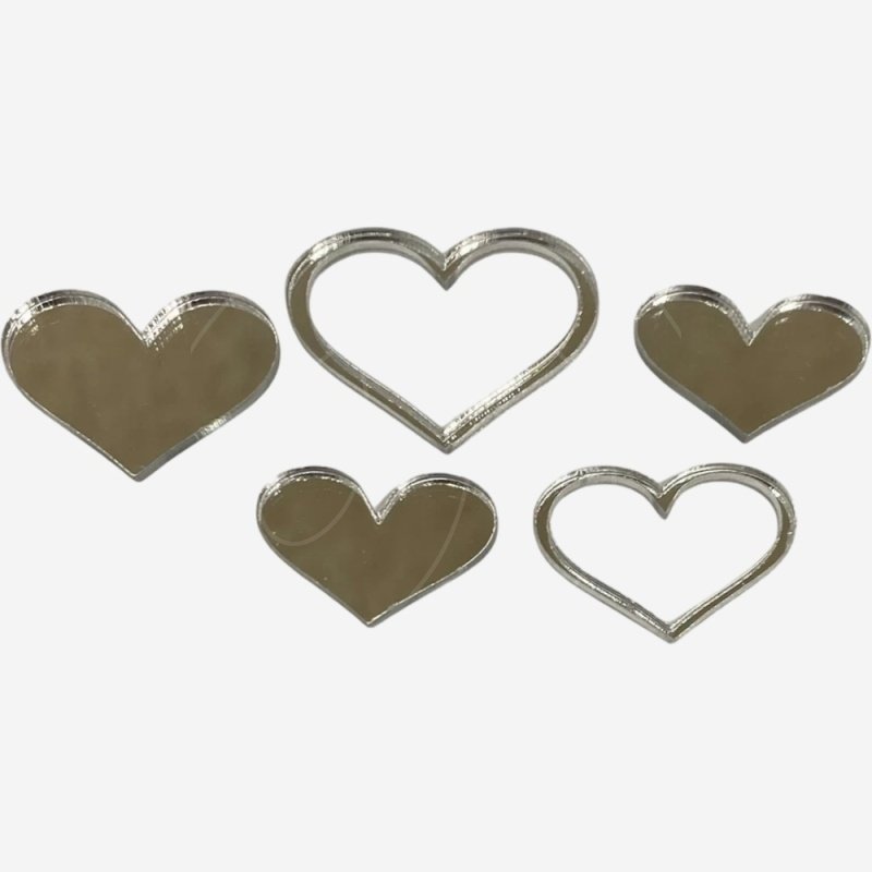 Набор топперов декоративных акриловых "Сердечки" Серебро 5 шт