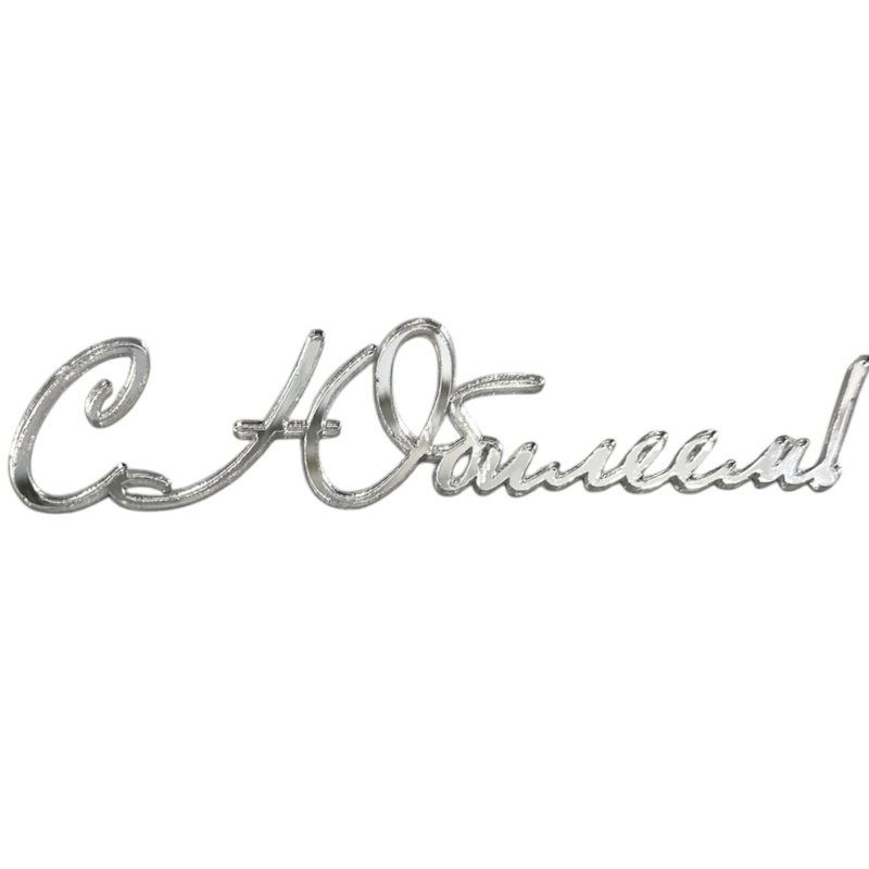 Топпер декоративный акриловый "С Юбилеем курсив" Серебро 11х7 см