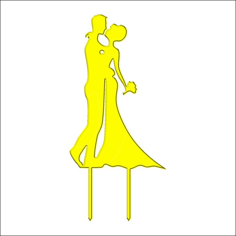 Топпер декоративный акриловый "Свадебная пара с букетом на палочке" Золотой 12х8 см