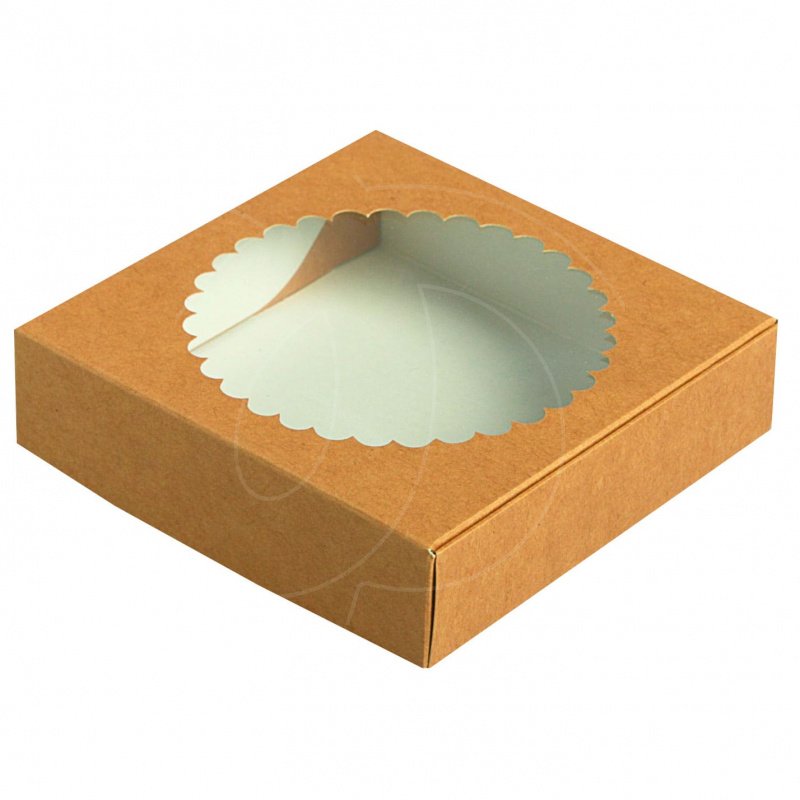 Доставка Коробка для печенья/конфет с окном крафт 11,5х11,5х3 см из магазина в вашем городе: