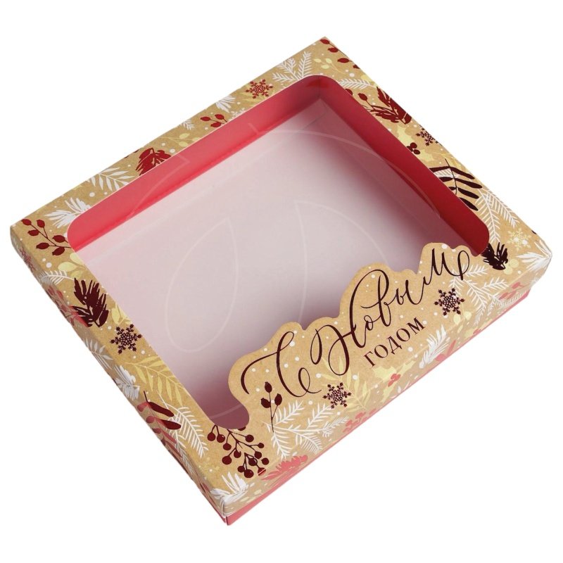 Доставка Коробка для сладостей с окном "Золотой Новый год" 23,5х20,5х5,5 см из магазина в вашем городе: