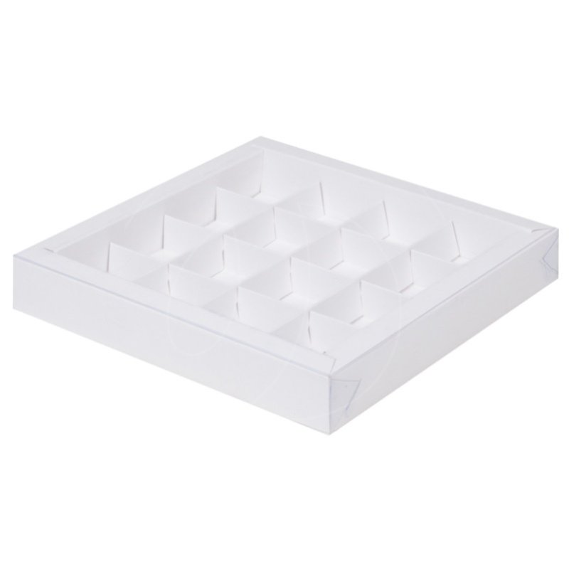 Доставка Коробка на 16 конфет с прозрачной крышкой белая 20х20х3 см из магазина в вашем городе: