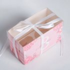 Коробка на 2 капкейка с окном "С 8 марта" 16х8х10 см