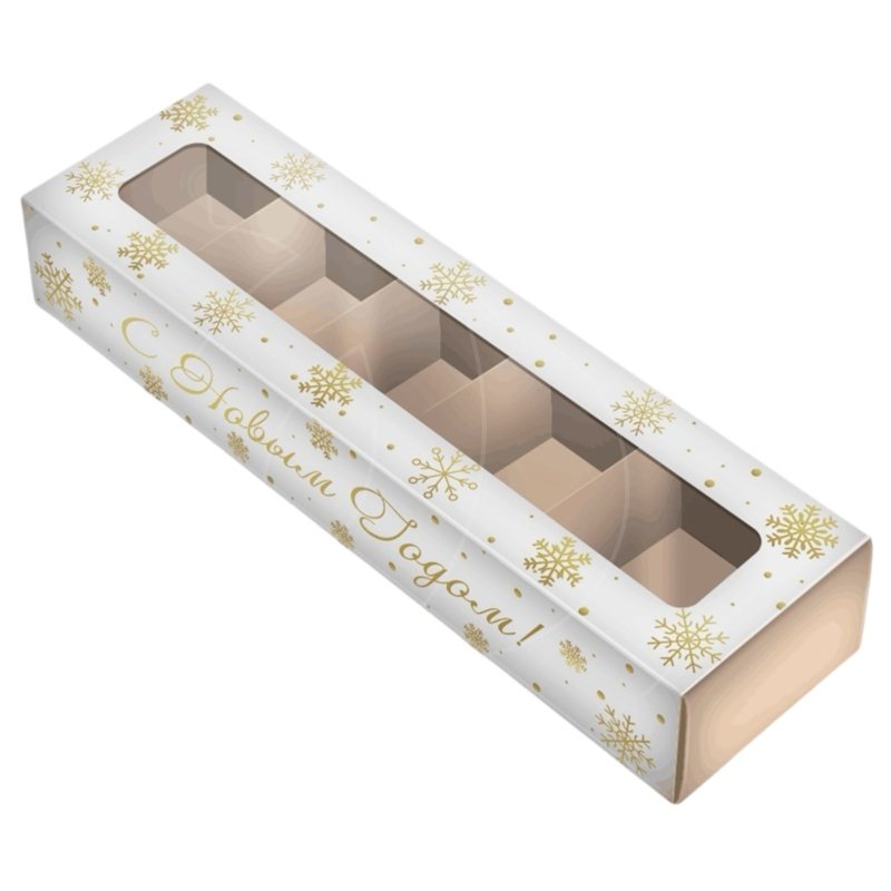 Доставка Коробка на 5 конфет с окном "Золотые снежинки" 21х5х3,3 см из магазина в вашем городе: